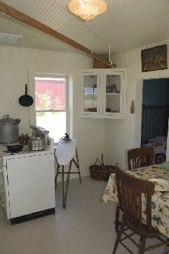 Anna and Frank Eaton in the kitchen on Frank's 90th birthday, October 26, 1950